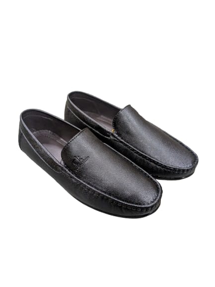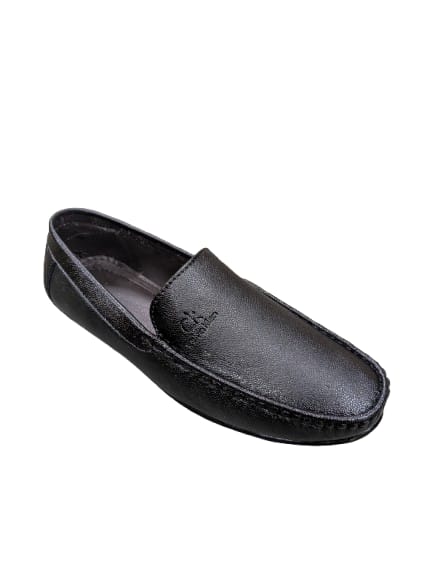 Classic Black Leather Loafers for Men WB 06 – Embossed Detailing Slip-On Shoes 301 BK WB